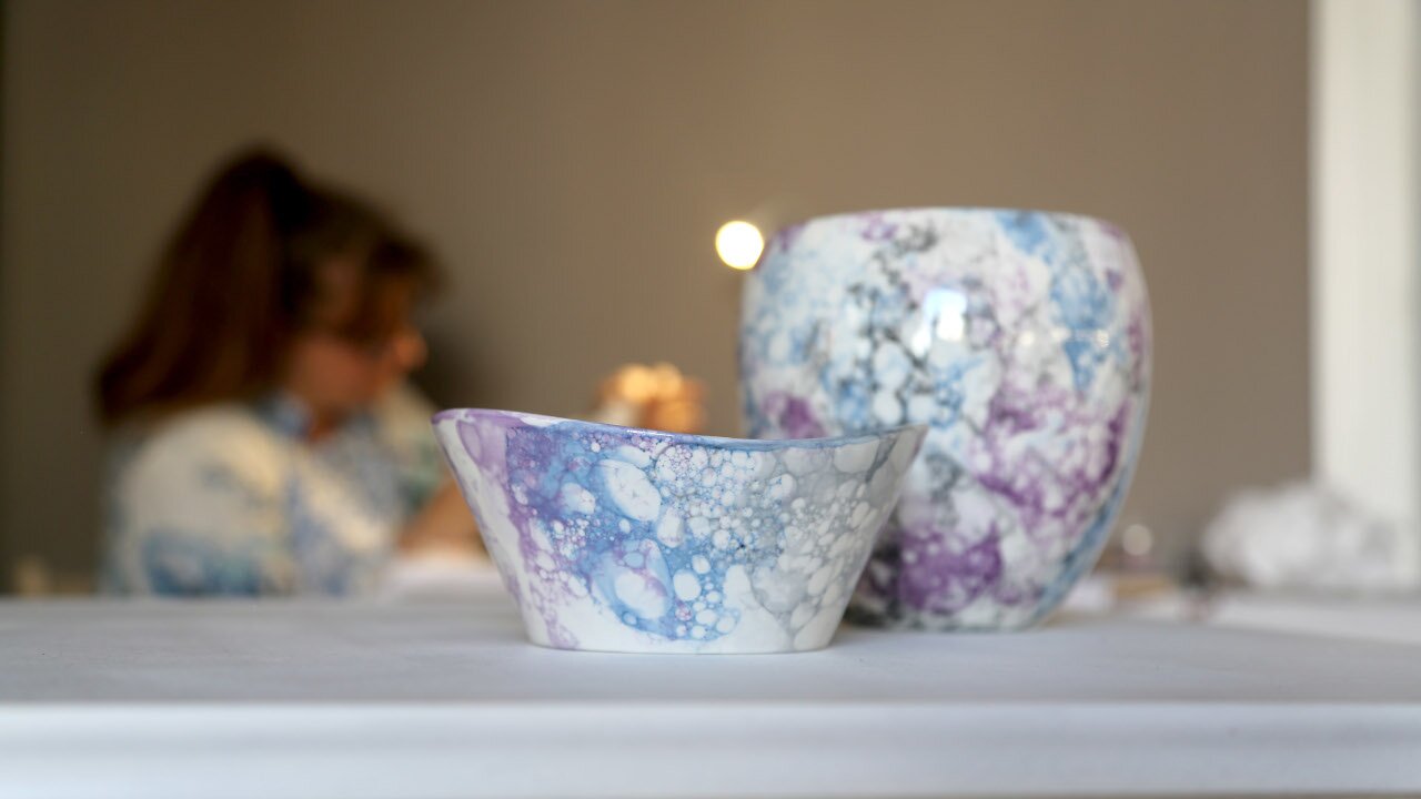 Inoltre, continua a sperimentare tecniche contemporanee, a creare smalti personali - come i bellissimi smalti alla cenere - e a cercare nuove forme e colori per esprimersi e soddisfare la sua clientela.