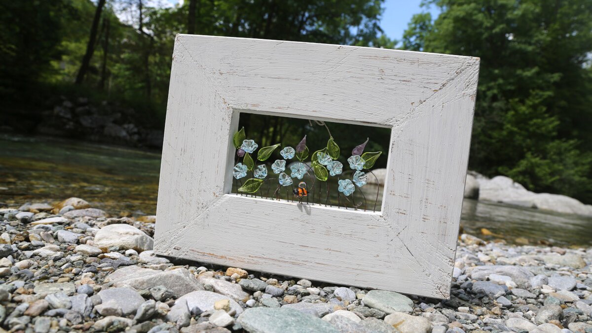 Quadri in legno con inserti in vetro lavorati a lume